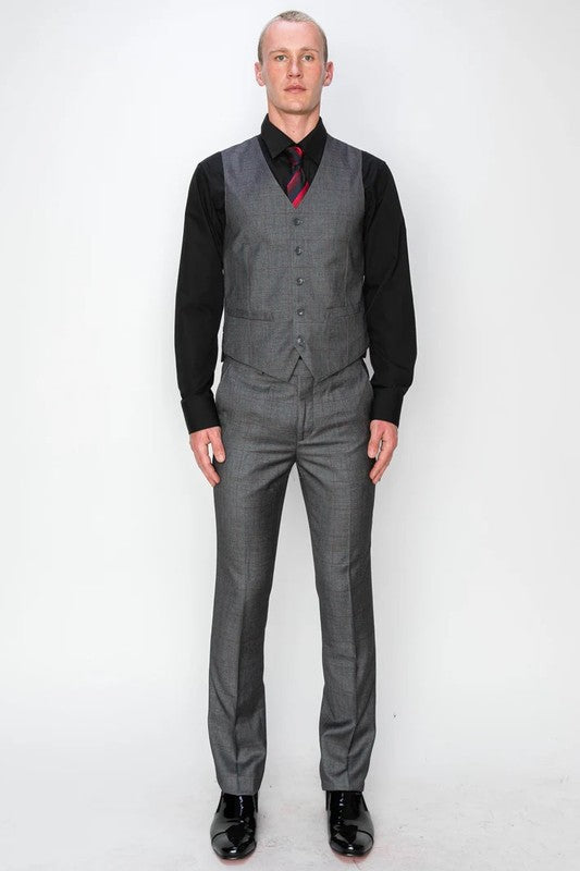 1318-GRAY-CHECKER-3PC-SLIM SIZE 34S-46S & 34R-56R & 38L-56L