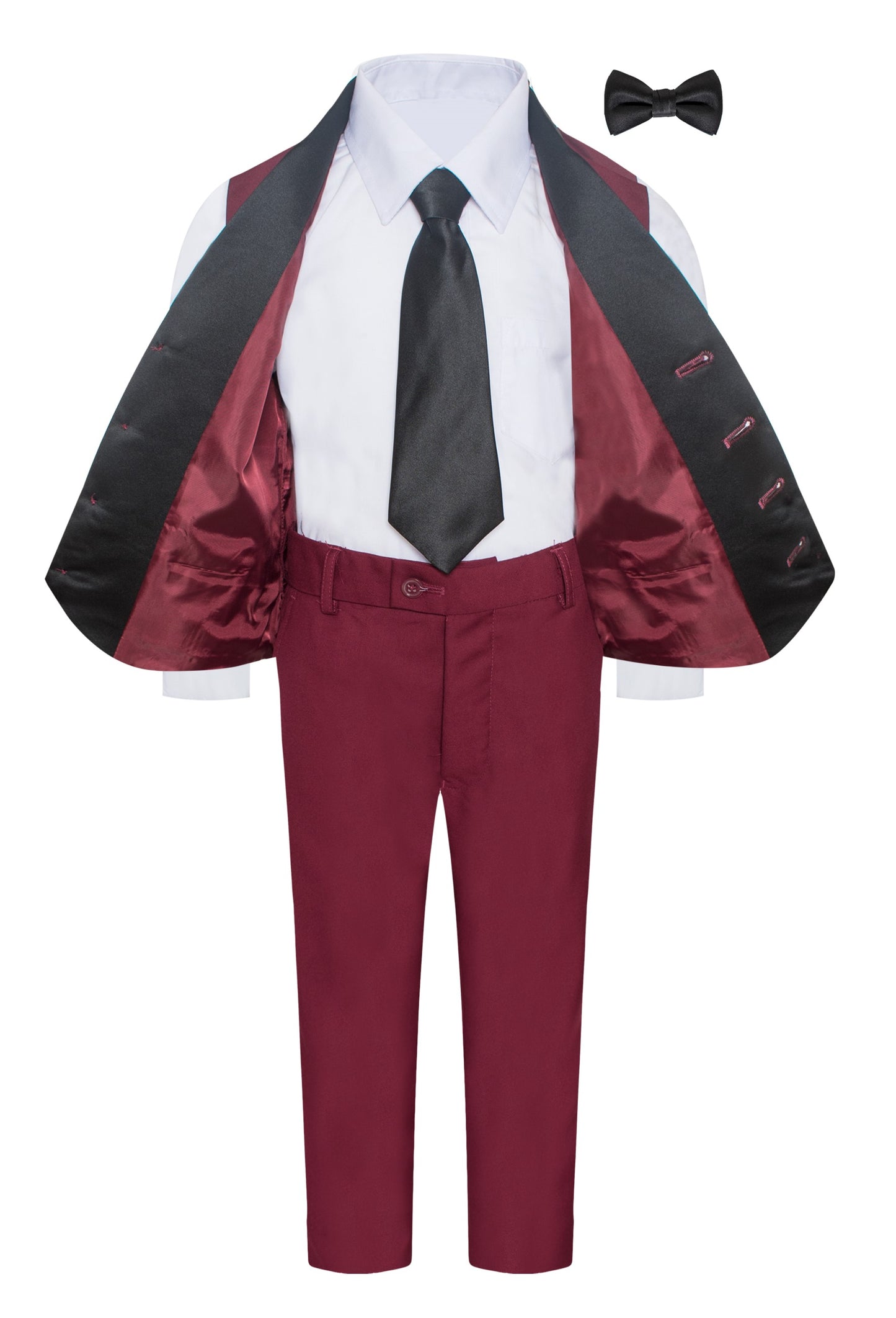 TUX-VS BURGUNDY BOY'S FORMAL VEST SET WITH SHAWL LAPEL SIZE 1-14