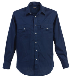 Men’s Solid Long Sleeve Western Shirt with Pearl Snap-on Buttons