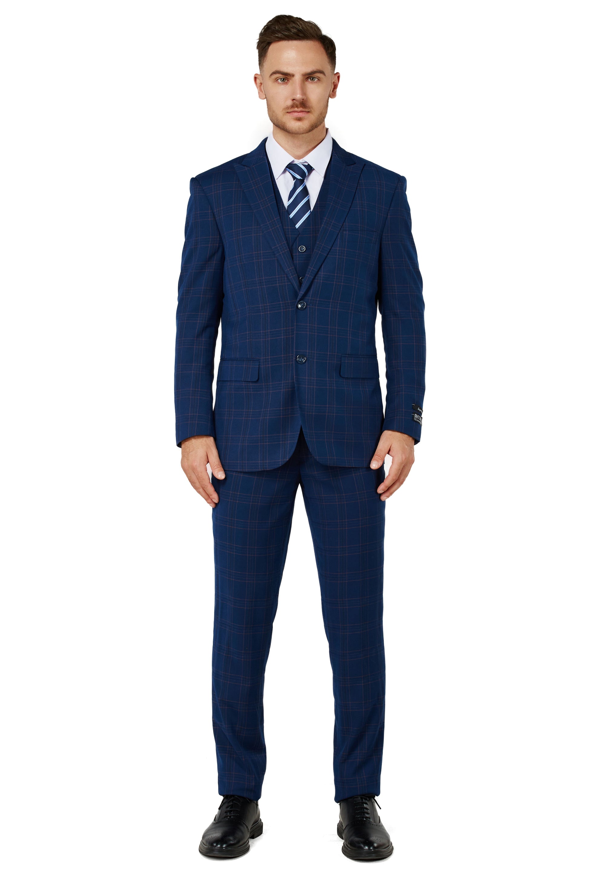 1502-Men's Blue Checker Notched Lapel Suit Slim Fit (3 PCS)