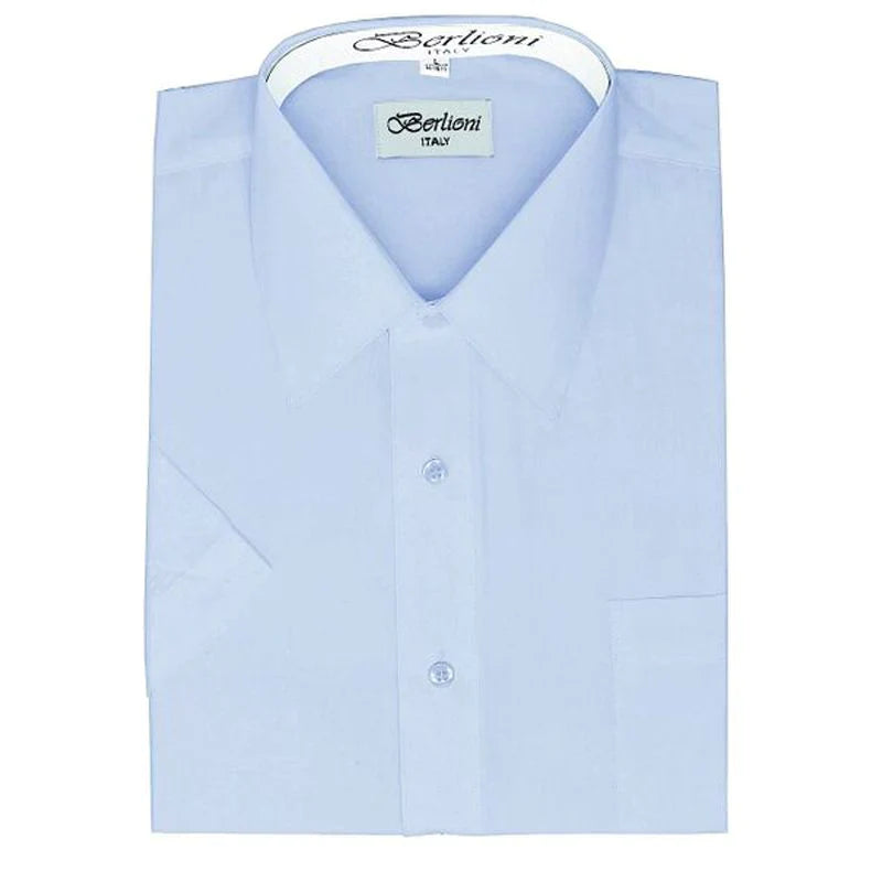 Men's slim-fit dress shirt button-down styling with point collar. Long sleeves featuring french convertible cuffs top quality easy-care poly-cotton blend.Timeless Italian classic design with lighter fabric suitable for year-round use