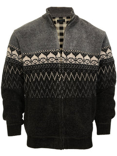 - High quality chenille knit with velvety look and feel. Features a warm very soft checkered fleece lining of body and sleeves.